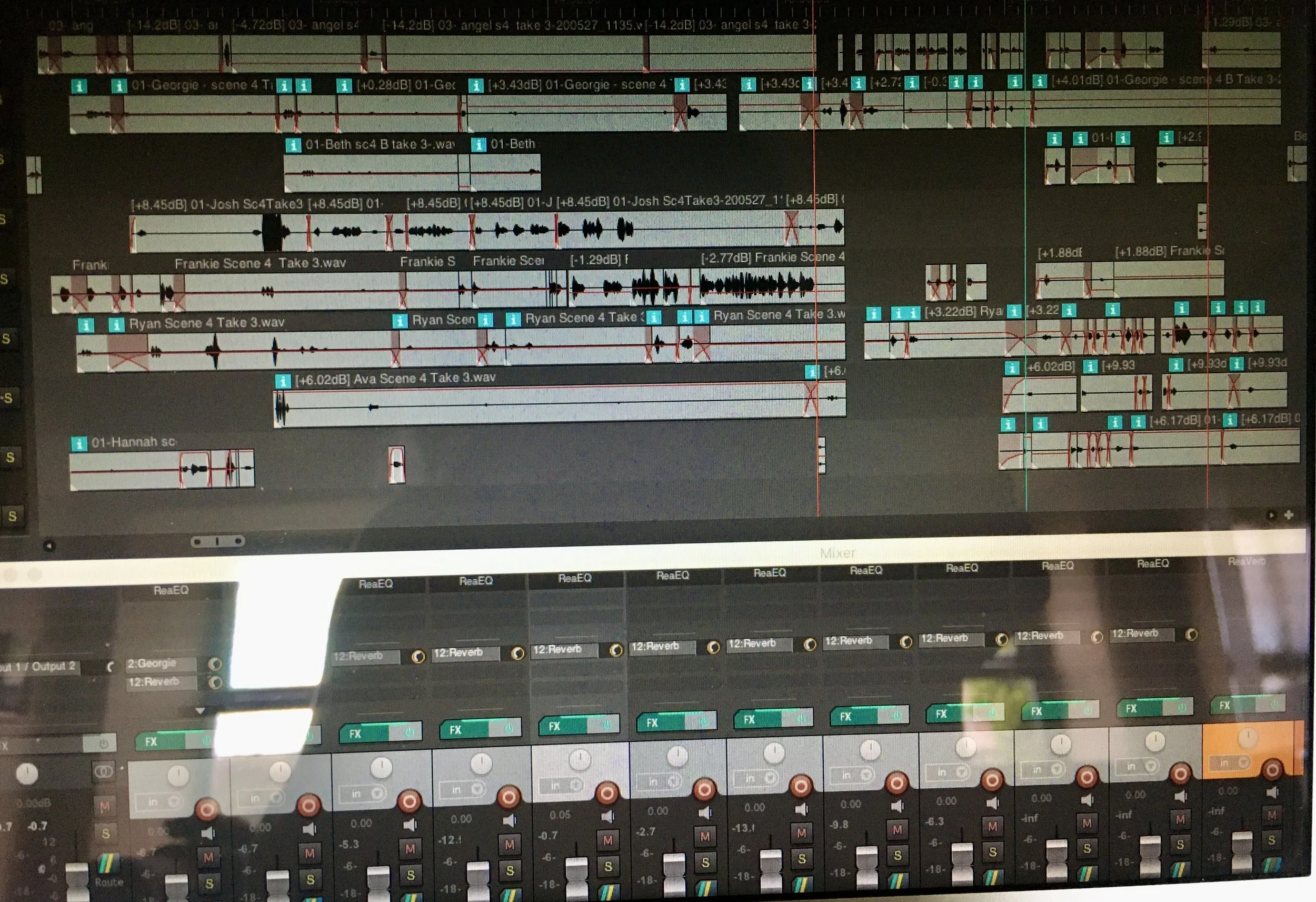 After recording, the work continues in post production, editing in the best takes, layering sound effects, tweaking the timing, and polishing and honing to craft the best possible version of the work.